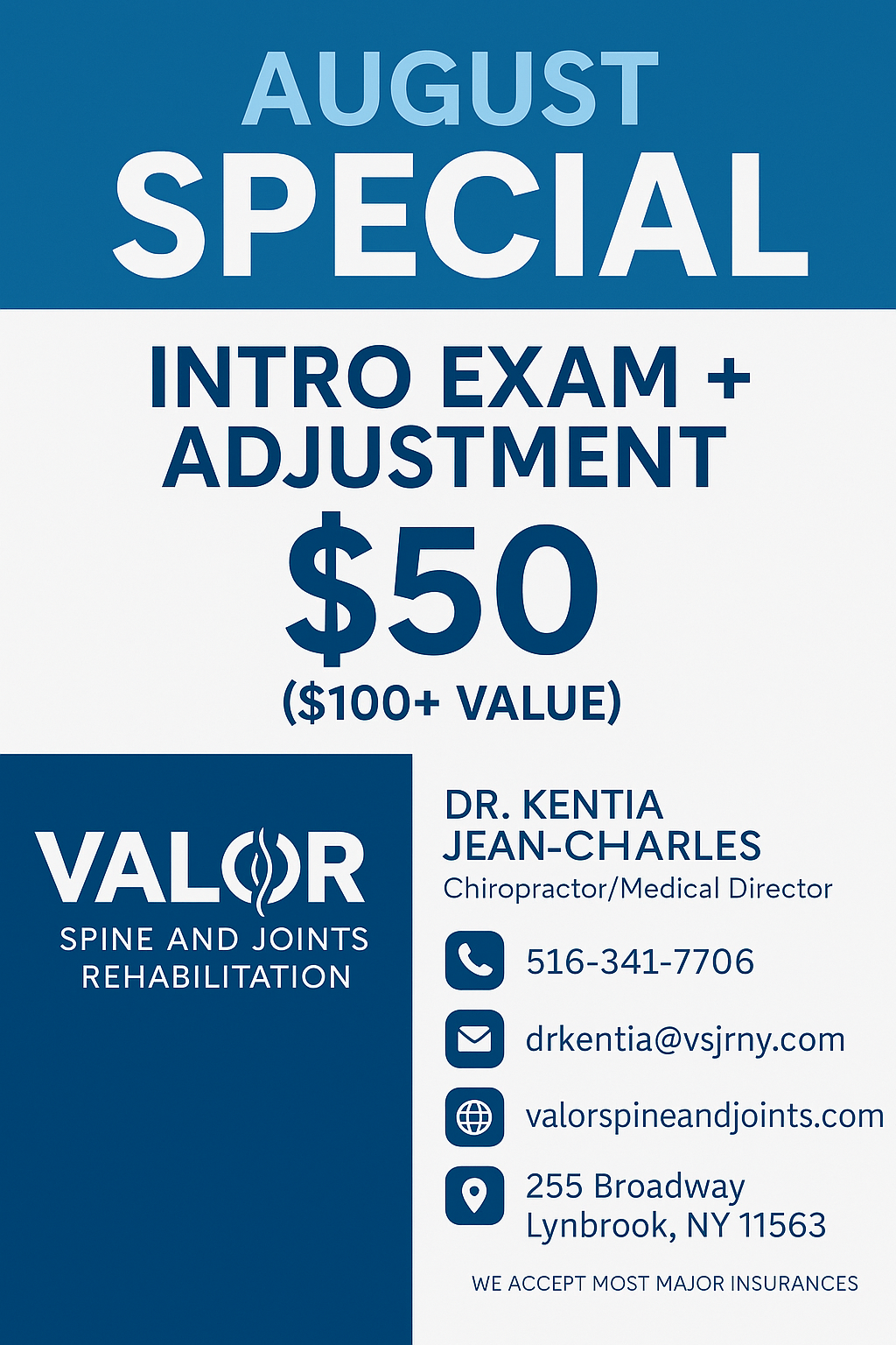 Valor Spine & Joints Rehabilitation - $50 Intro Exam & Adjustment ($100+ VALUE)